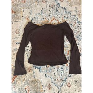 This Reformation top is crafted from a lightweight knit and has never been worn. It features long sleeves, an off-shoulder neckline, and a tie keyhole at the front. The length is 14.5in / 37.0cm, from the center back. Hand wash.