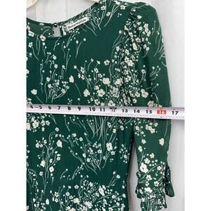 Reformation 8 Doutzen Floral Mini 3/4 Sleeve Dress Ruffle Fir & Flare Lake Green