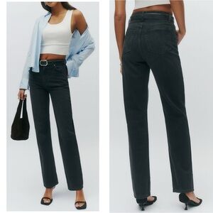Reformation Abby High Rise Straight Leg Black Denim Jeans color Vans Size 27 NEW