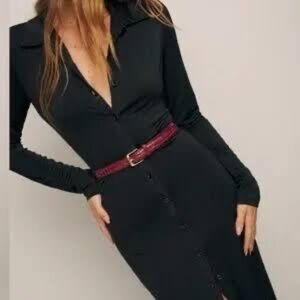 Reformation Adaline Knit Jersey Maxi Button Down Dress Black Medium Like New
