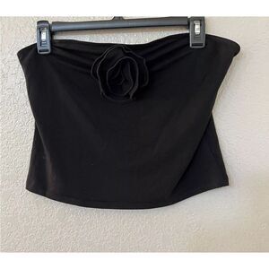Reformation's black Adalynn top and skirt set is cut from lightweight jersey and is punctuated with a blooming rose appliqué for a romantic finish.