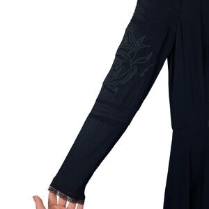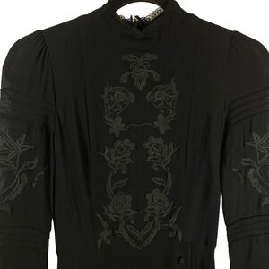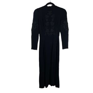 Reformation Adelia Embroidered Mock Neck Long Sleeve Midi Dress Black Size 2