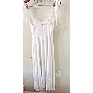 Reformation Adler Ivory Midi Dress Size 0 Tie Strap Smocked Back Ruffle Hem Bust