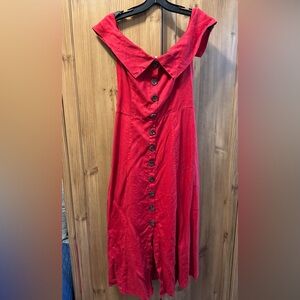 Reformation Adriel Linen Midi Dress, Red, Size 8