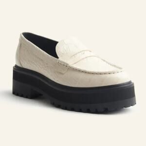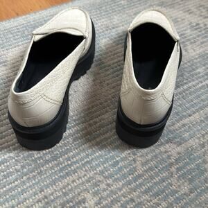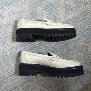 Reformation Agnes Chunky Croc Embossed Platform Loafers Size 8.5 Two Tone White