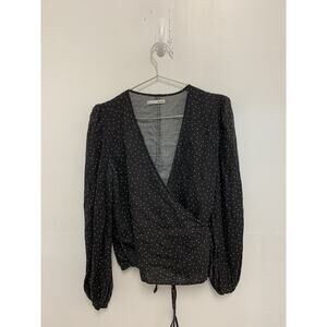 Reformation Alaina Wrap Top Ditto Dot Black White Polka Dot Print Blouse Shirt M