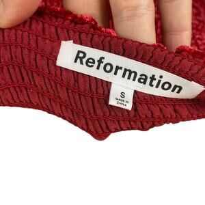 Reformation Albi Crimson Red Velvet Smocked Mini Dress SZ S