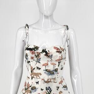Reformation Alessa Linen Dress Women’s Size 2 Janeiro Print Cut Out Midi Tie