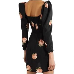 Reformation Amala Mini Dress Ingrid Black Floral Long Sleeve Ruched