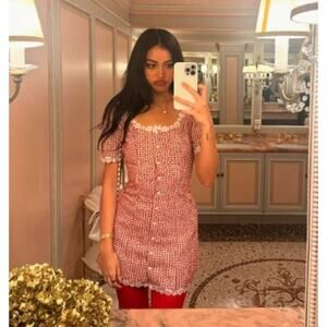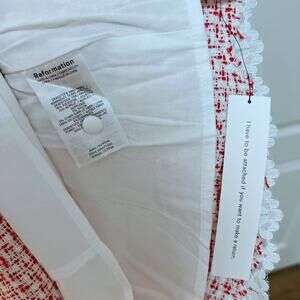 Brand new with tag. The Reformation Anabella Dress is a flattering A-line mini with short sleeves, a button-front design, and an adjustable tie-back for a customized fit. Lightweight polyester fabric makes it easy to wear for daytime outings or dressed-up occasions. A versatile silhouette that works for warm weather, brunch, vacations, and casual events.