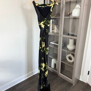 Reformation Anaiis Mood For Love Silk Dress 4 NEW Black Yellow Floral Satin Maxi