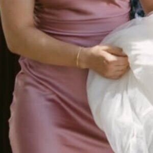 Intended to graze the floor when worn with heels. Hemming may be necessary to achieve desired length - dress has not been altered.