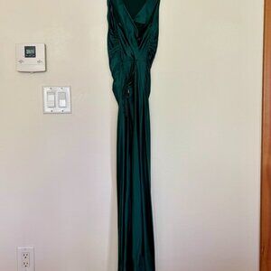 Reformation Anaiis Silk Dress in Forest, Size 0. Worn once for a wedding and dry-cleaned afterwards. In like-new condition.