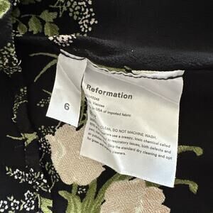The Reformation Anastasia Wilder Floral Long sleeve Mini Dress in size 6 is a stylish and elegant choice for various occasions such as weddings, parties, or casual events. The dress features a round neck, long sleeves, and a beautiful floral pattern on a black viscose material. With a short dress length, it is perfect for the summer and spring seasons. The brand's reputation for quality and attention to detail ensures that this dress will be a standout in any woman's wardrobe.