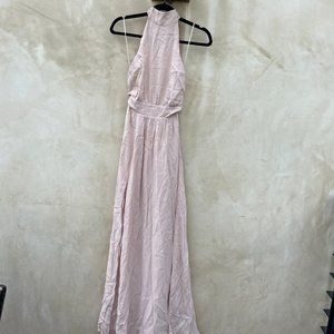 Reformation Andee Maxi Length Dress Champagne Halter Neckline Bow Tie Open Back