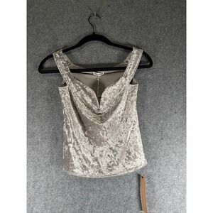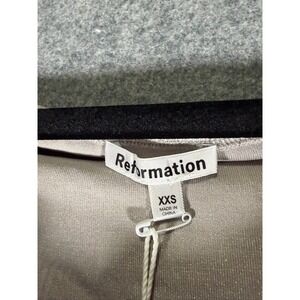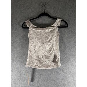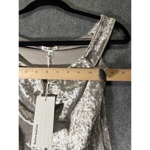 Reformation Andria Moonlight Velvet Knit Top Off Shoulder V Neck Silver XXS