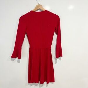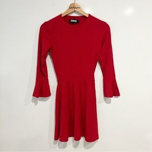 Look cute, be comfortable. This is a tight fitting, fit and flare dress with a crew neck and slight bell sleeves