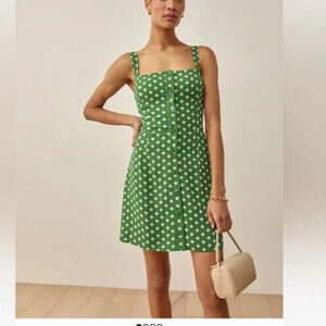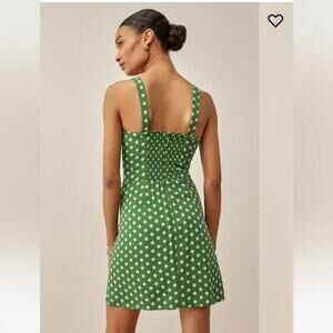 Reformation Antonella Mini Dress Green White Floral Button Front Square …