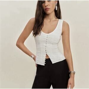 Reformation Archer Top White 4 Rouched Button Front Sexy Romantic