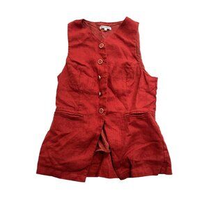 Description from retailer: Shop the Aspen Linen Top from Reformation, a sleeveless top with a high neckline, center front buttons, and faux pockets. Color: red