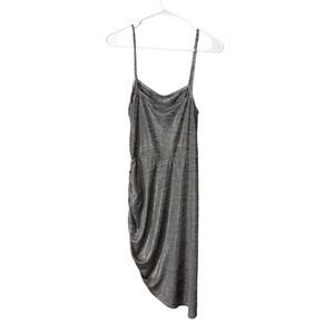 Reformation Asymmetrical Silver Dress great condition minimal wear material has stretch 14” pit to pit Size Small