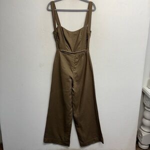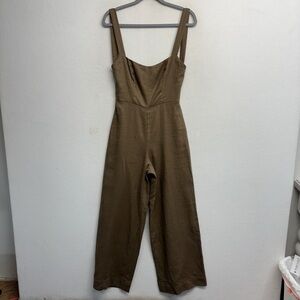 Reformation Autumn Linen Jumpsuit Taupe Tan Wide Leg Open Back 0