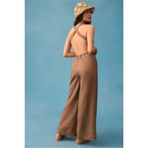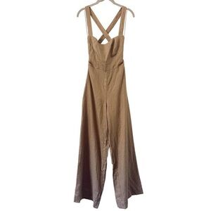 Reformation Autumn Linen Jumpsuit in Mushroom Brown, Wide Leg NEW