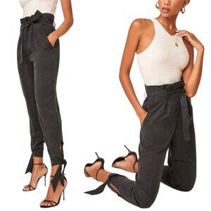 Reformation Avalon Pant Tie Ankle Paperbag Waist Black Size 8