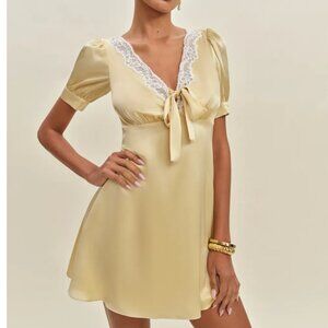 Reformation Avin Silk Mini Dress Sz2 Blonde Yellow Beige Lace Party French