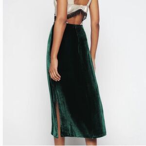 Reformation Bailee Velvet Silk Rayon Plush Green Midi Skirt Size 6