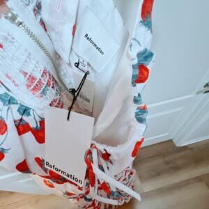 Brand new with tags, Reformation Balia linen midi dress in a flattering basque-waist silhouette. Designed sleeveless with a fitted bodice and flowing skirt for an effortlessly feminine look. Crafted from breathable linen, perfect for warm weather, brunches, and summer events. A timeless piece that transitions beautifully from day to evening. Size 2.