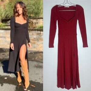Reformation Banks Knit Rib Midi Dress Chianti Red Sz XS