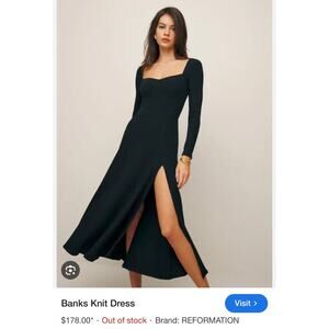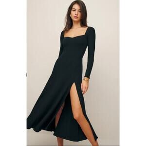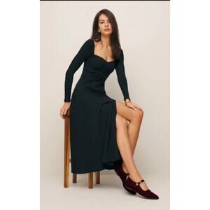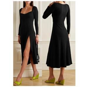 Reformation Banks Long Sleeve Ribbed Stretch-Modal Midi Dress Black Women's XS