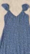 Blue floral viscose blend (57% Viscose, 43% Rayon). Hourglass. Sweetheart. Cap sleeves. Back zipper closure. Front slit.