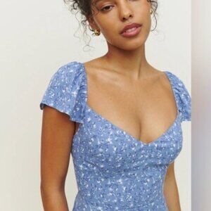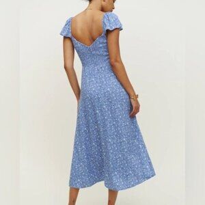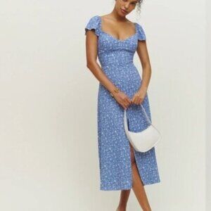 Reformation Baxley Midi Short Sleeve Dress in Eve Blue Floral | US 0 UK 4