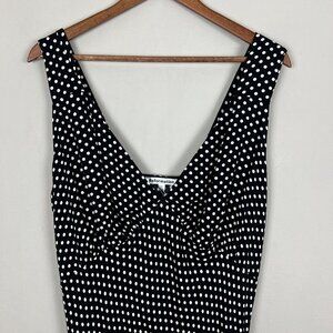 Reformation Beauden Midi Dress Womens 1X Black White Polka Caviar Dot Ruched Crepe Plus NEW