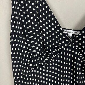 Reformation Beauden Midi Dress Womens 1X Black Polka Caviar Dot Ruched Crepe NEW