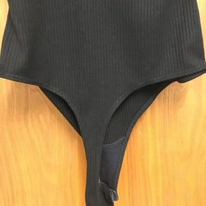 Sexy Reformation Black 'Becky' Ribbed Bodysuit, Size Small.. some stitching came undone from one sleeve end - see last photo- it's minor.. still in great condition.