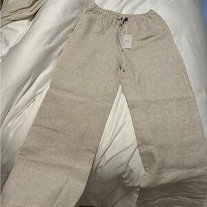 Elegant beige linen trousers by Reformation. Ideal for relaxed outings.