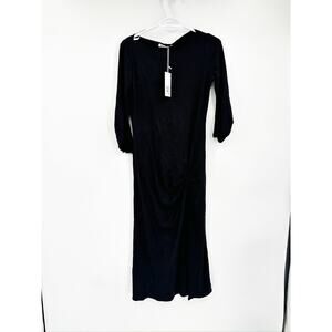 Reformation Belmont Black Ribbed Knit Gathered 3/4 Sleeve Midi Dress Size M NWT