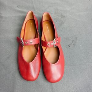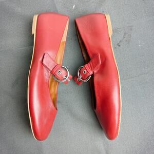 Reformation Bethany Red Leather Ballet Flats Silver Buckle 8