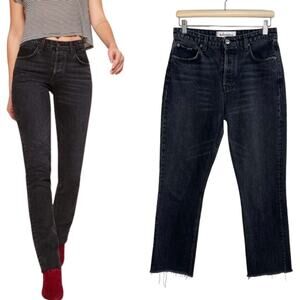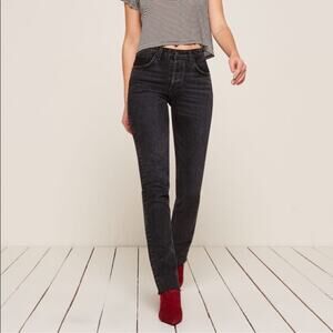 Reformation Black Brooke High Rise Raw Hem Jeans in Pacific 28