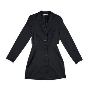 Reformation Black Button-Down Back Cutout Tuxedo Mini Dress Size 4 - NWOT