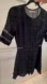Chic black mini dress with button-down front. Features lace detailing for added elegance. Perfect for versatile styling.
