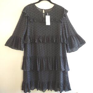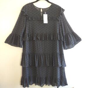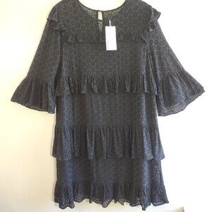 🆕 Reformation Black Eyelet Mini Dress Tiered w/ Bell Sleeves Women's Large