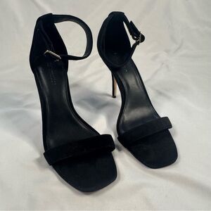 Reformation Black Kelly Stiletto Heel Sandal Ankle Strap Suede Formal Size 7.5
