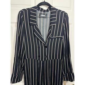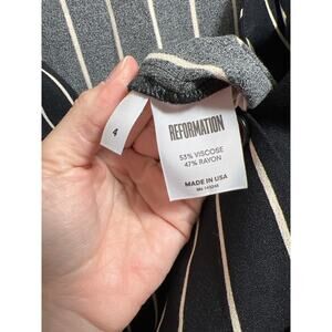 Reformation Black Long Sleeve Pinstripe V Neck Jumpsuit Women's Vacation Concert