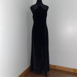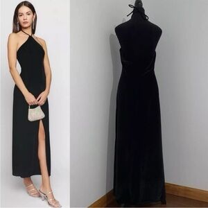 Reformation- Black Nyla Velvet Halter Dress Backless Thigh High Slit Size Large