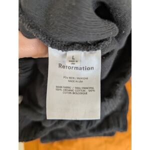 Add a sustainable touch to your wardrobe with these Reformation sweatpants! Made in the USA from 100% organic cotton, these black ribbed corduroy joggers are both stylish and eco-friendly.