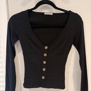 Reformation Black Ribbed Button Front Long Sleeve Top Women’s XS Perfect NWOT